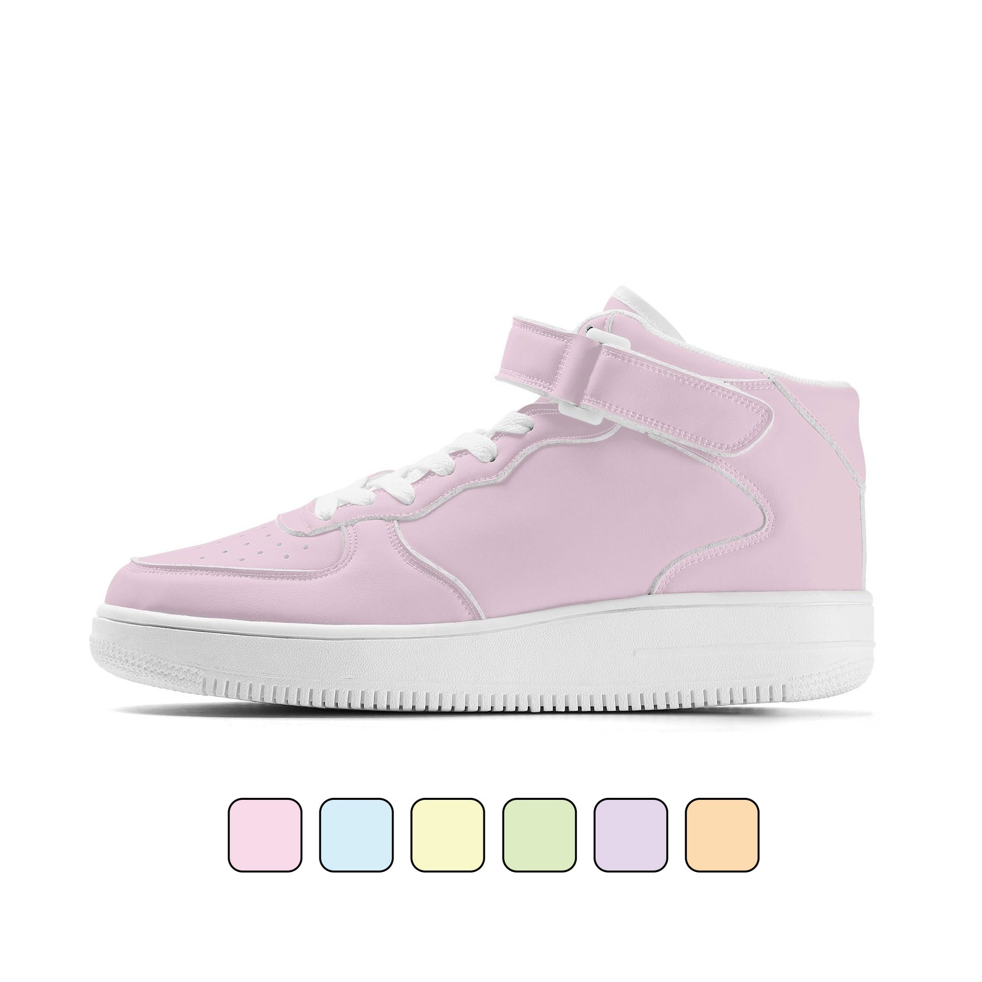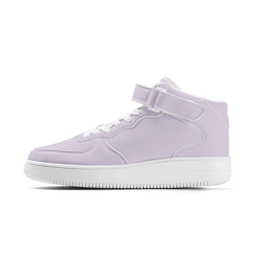 ストリートスタイルに馴染む、洗練されたハイカットデザイン。 高級感のあるなめらかな合成皮革(PUレザー)を使用し、凹凸のない上品な仕上がりが魅力。どんなプリントデザインも映えるので、存在感のあるスタイリングに最適です。 低反発クッションが足全体を包み込み、長時間の歩行もラクラク。ストリートカジュアルからスポーティなコーデまで、幅広いシーンで頼れる一足。 おしゃれも履き心地も妥協しないあなたにおすすめのスニーカーです。